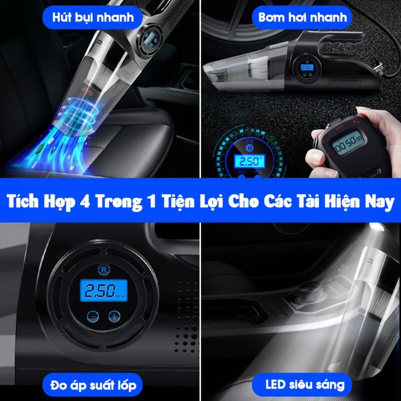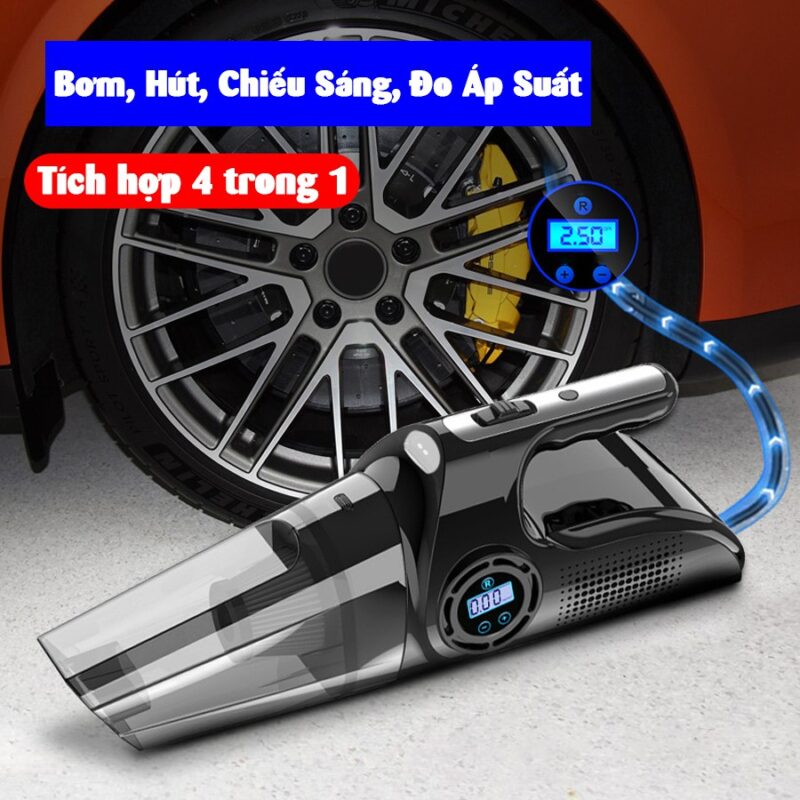 - Máy hút bụi ô tô nhanh tự ngắt, đo áp suất lốp, đèn led siêu sáng. Đa năng tiện dụng.